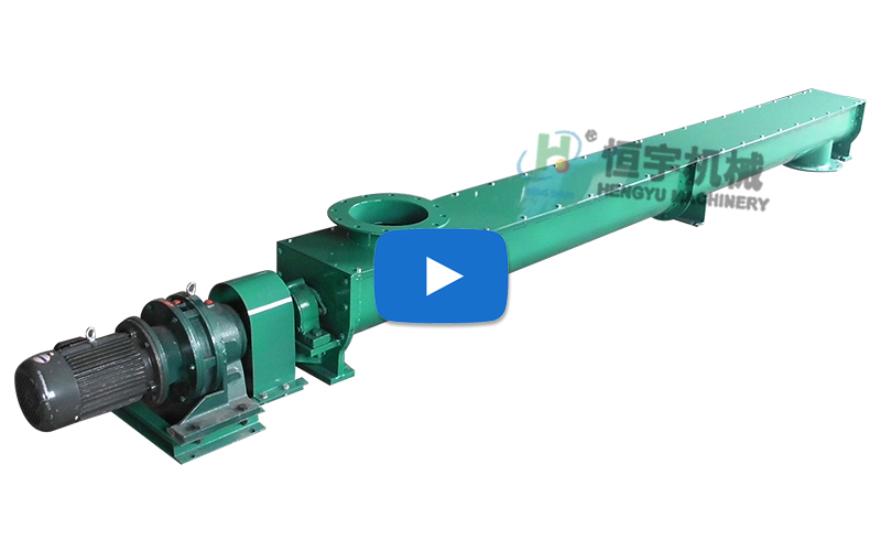 U型螺旋輸送機是一種利用電機帶動螺旋回轉(zhuǎn),推移物料以實現(xiàn)輸送目的的機械。當(dāng)螺旋軸轉(zhuǎn)動時,由于物料的重力及其與槽體壁所產(chǎn)生的摩擦力,使物料只能在葉片的推送下沿著輸送機的槽底向前移動,其情況好像不能旋轉(zhuǎn)的螺母沿著旋轉(zhuǎn)的螺桿作平移運動一樣。物料在中間軸承的運移,則是依靠后面前進著的物料的推力。所以,物料在輸送機中的運送,完全是一種滑移運動。